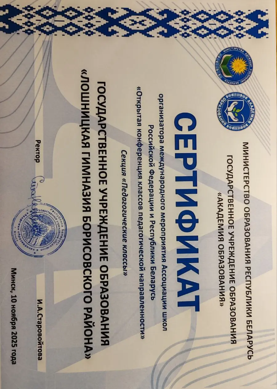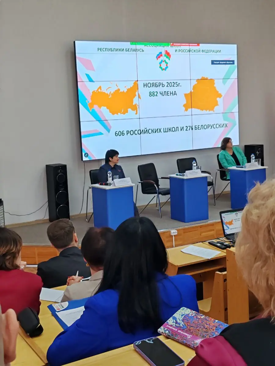 10 ноября 2025 года в УО "Академия образования" состоялось заседание Ассоциации школ Российской Федерации и Республики Беларусь "Деятельность Ассоциации школ Российской Федерации и Республики Беларусь: опыт и перспективы", в состав которой входит и наша гимназия.