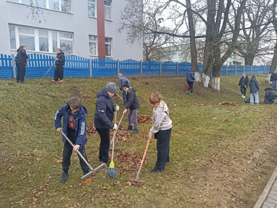Вооружившись граблями, метелками, мусорными пакетами, хорошим настроением, ответственностью и командным духом гимназисты продолжают очищать территорию гимназии от опавших листьев, а клумбы и цветники от засохшей растительности.