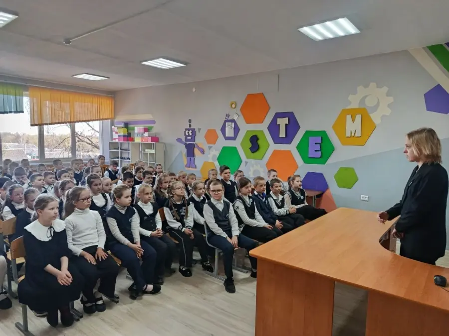 Гимназистка 11 класса Елена Полоник поделилась историей своей семьи с учащимися 2–3 классов - рассказала о родных, чья жизнь была связана с Великой Отечественной войной.