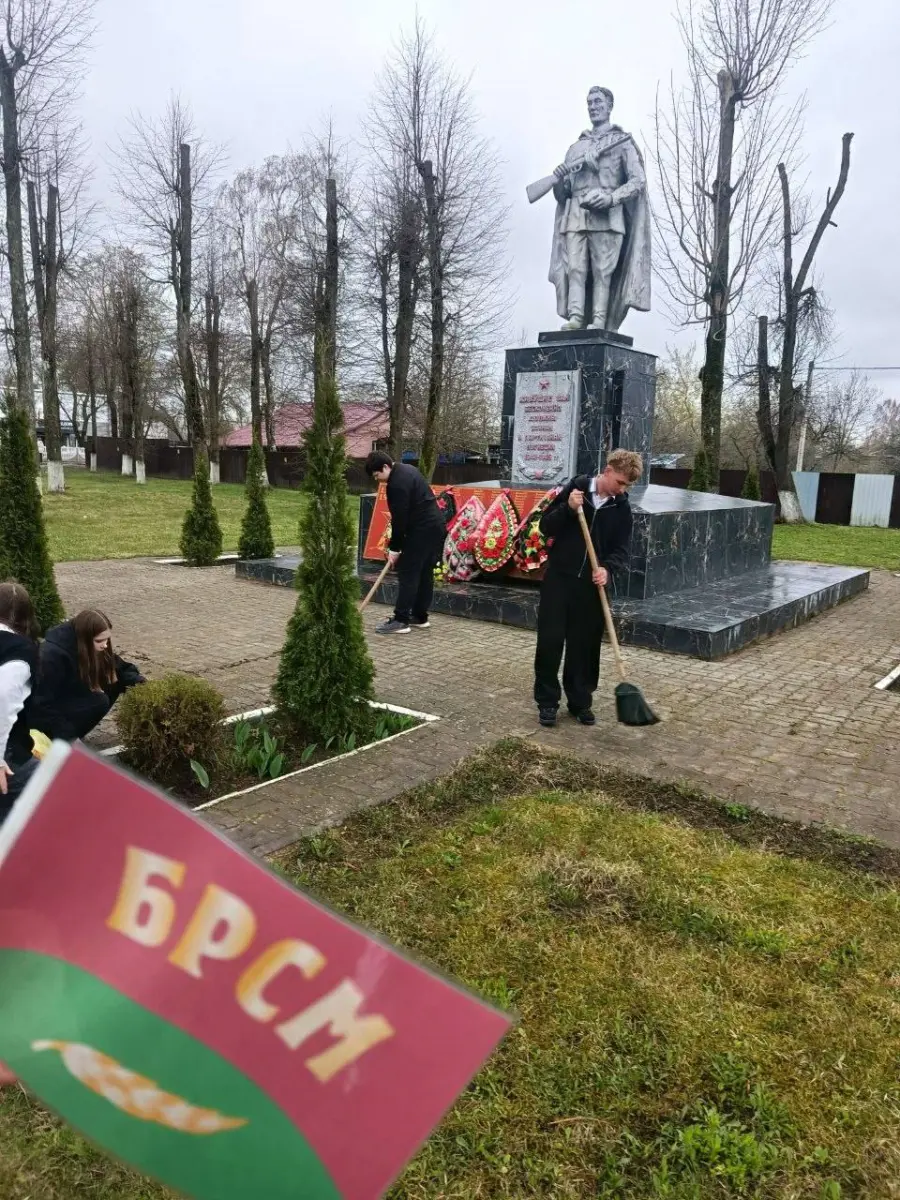 В рамках патриотической акции "Цветы Великой Победы" активисты первички БРСМ Лошницкой гимназии провели уборку территории у памятника воинам-освободителям и мирным жителям, погибшим в годы Великой Отечественной войны.