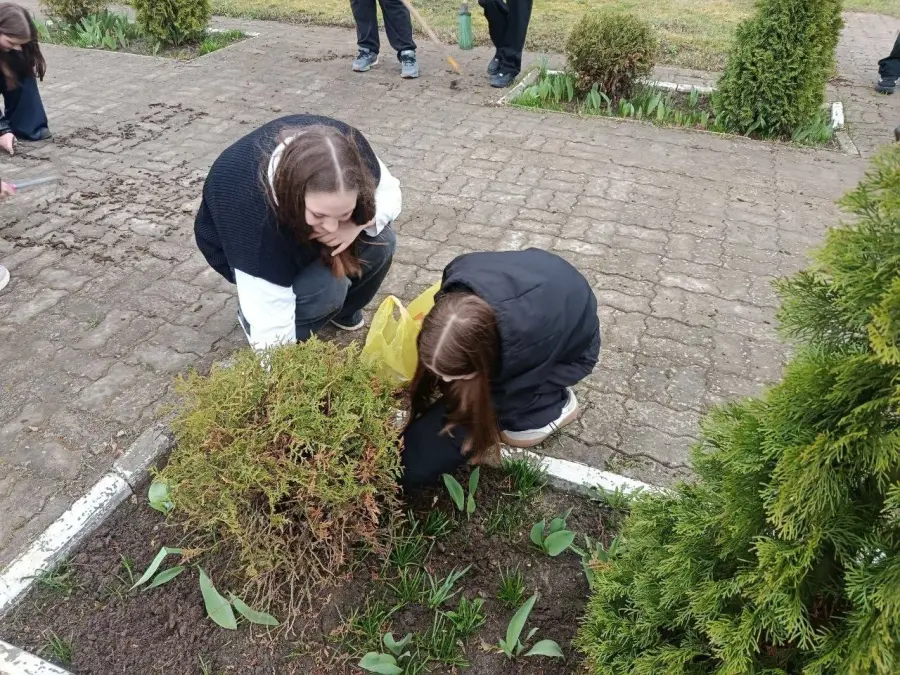 Ребята убрали опавшую листву и мусор, привели в порядок клумбы и газоны,