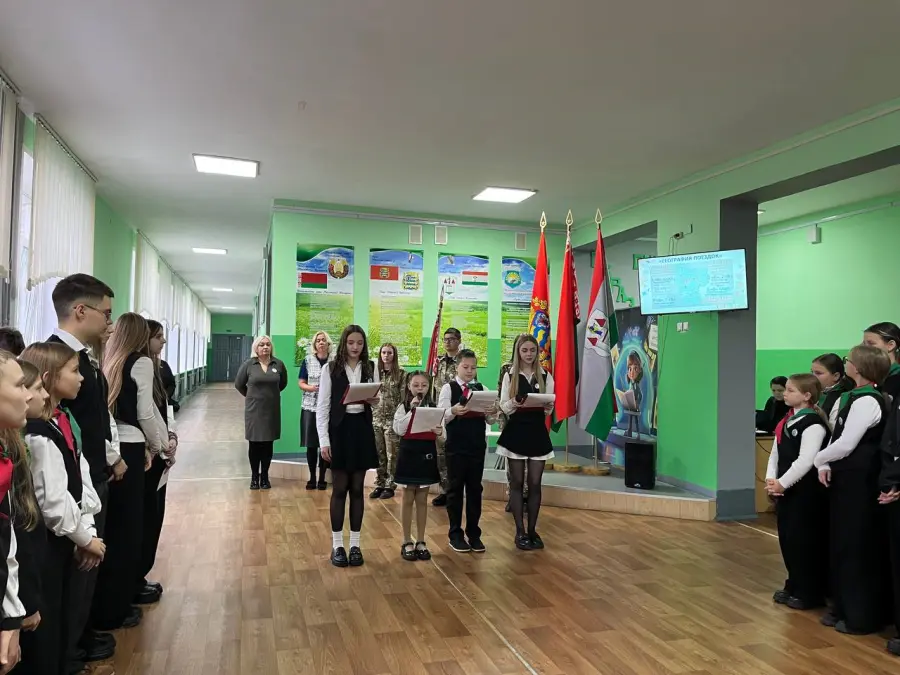 Торжественное мероприятие началось с торжественной церемонии выноса Государственного флага и исполнения Государственного гимна Республики Беларусь.