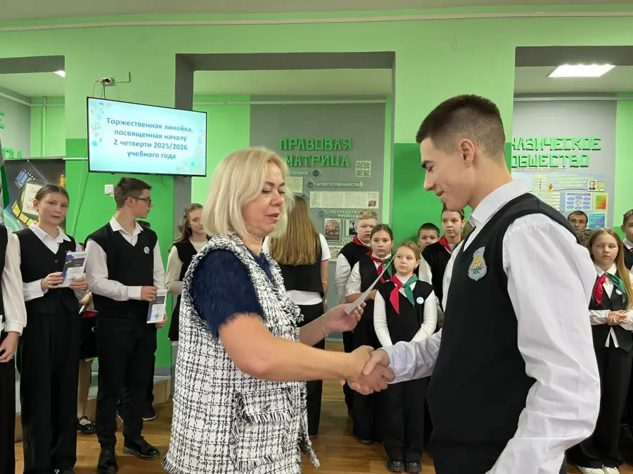 Директор гимназии Юлия Владимировна Саматыго поздравила учащихся с началом четверти и вручила дипломы победителям первого этапа республиканской олимпиады по учебным предметам.