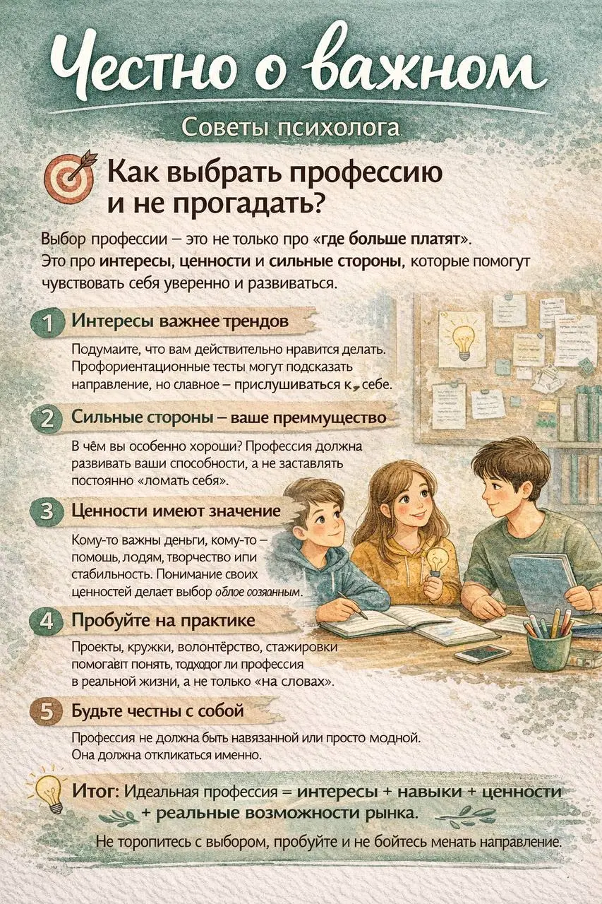 Выбор профессии - не про то "что больше платят", а про ваши интересы, ценности и сильные стороны.