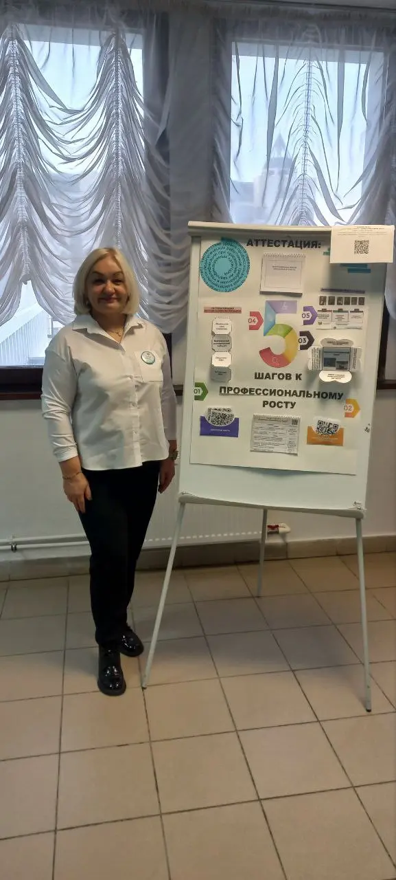 На тематической площадке заместитель директора по учебной работе Дервоед Л.И. представила стендовый доклад «5 шагов к аттестации».