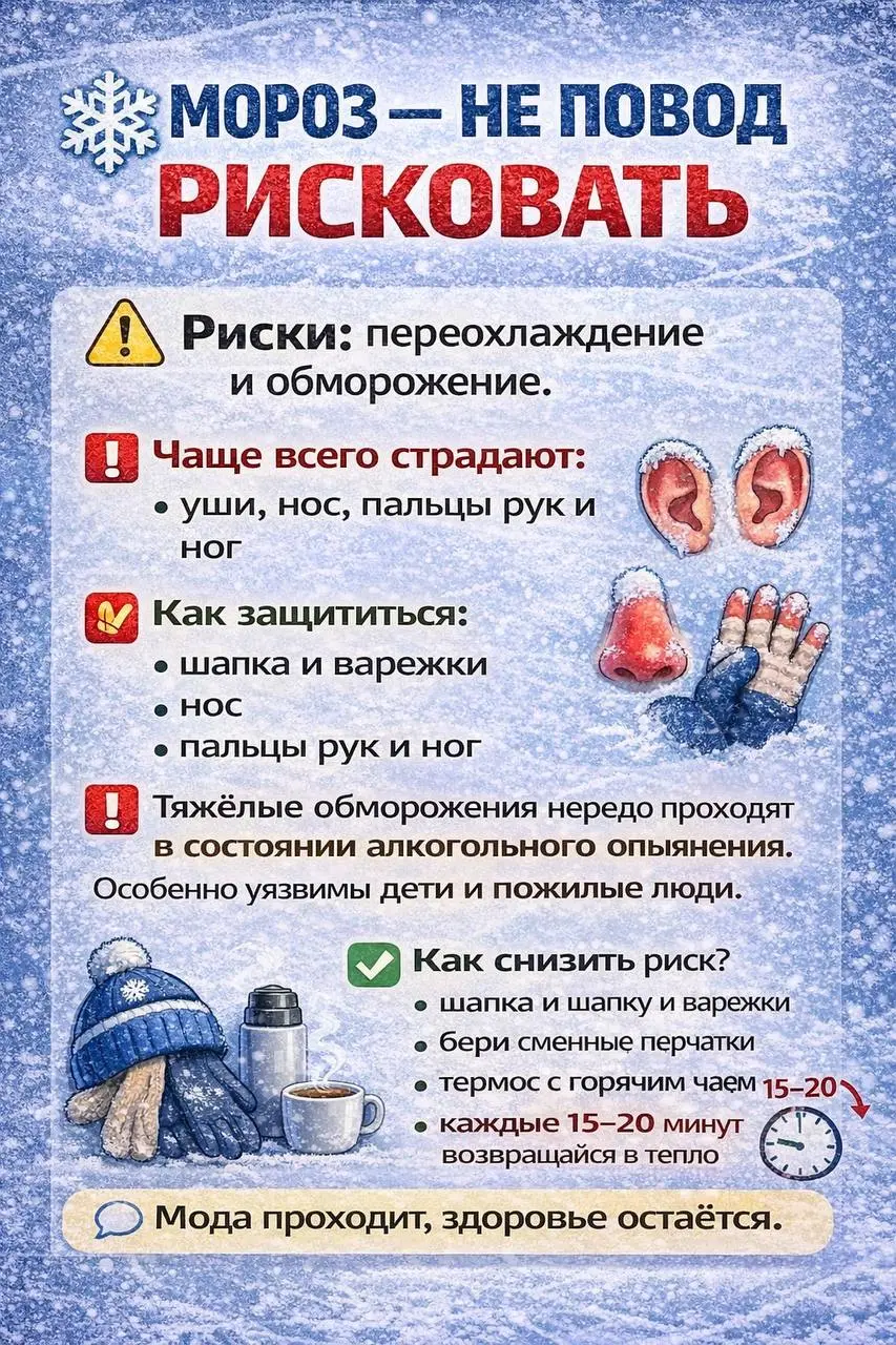 Основные зимние риски - переохлаждение и обморожение.