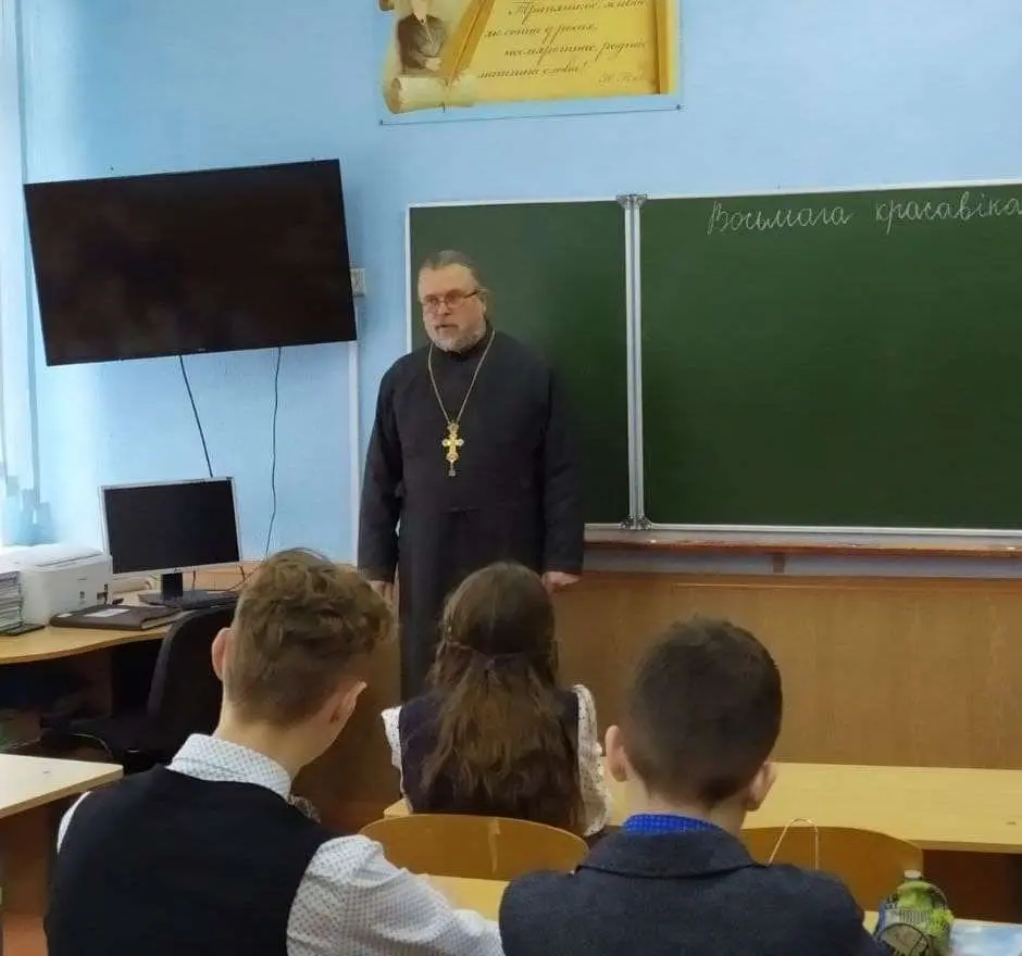 8 апреля 2021 г. в гимназии в рамках информационно-образовательного проекта "ШАГ" прошла встреча с настоятелем храма Святого Архангела Михаила, протоиереем Виктором Анатольевичем Гулевичем.