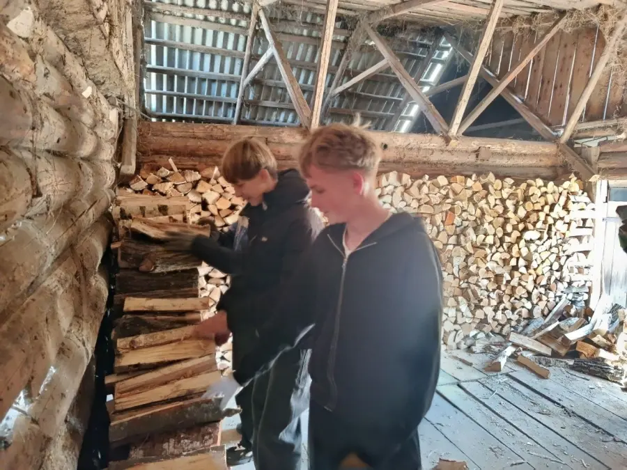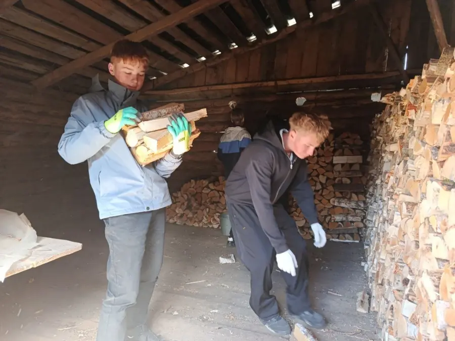 Волонтёрский отряд «Доброе сердце» сегодня выбрал именно такой путь. Ребята складывают дрова - аккуратно, ряд за рядом, превращая тяжёлую работу в настоящее дело со смыслом.