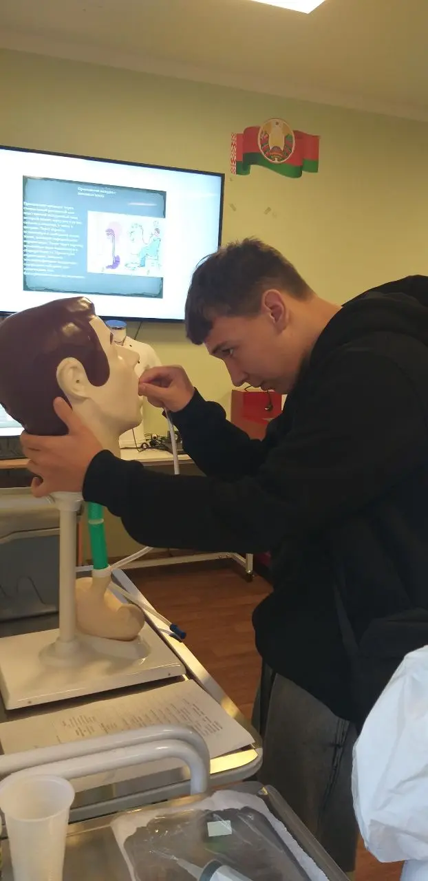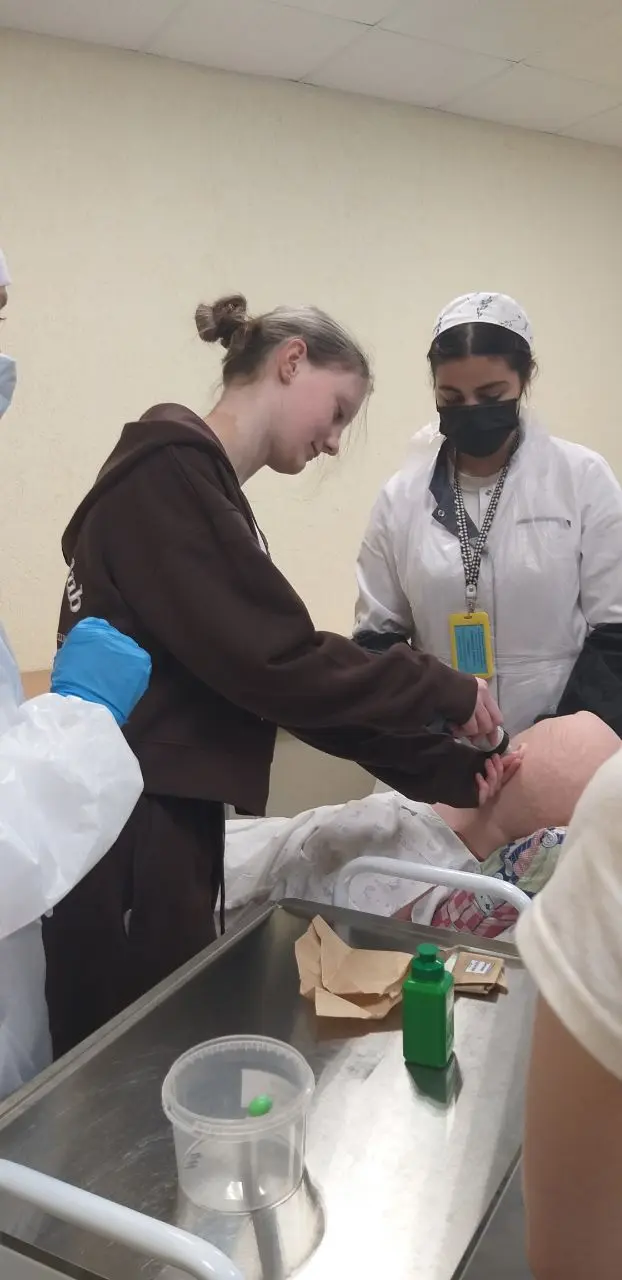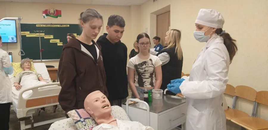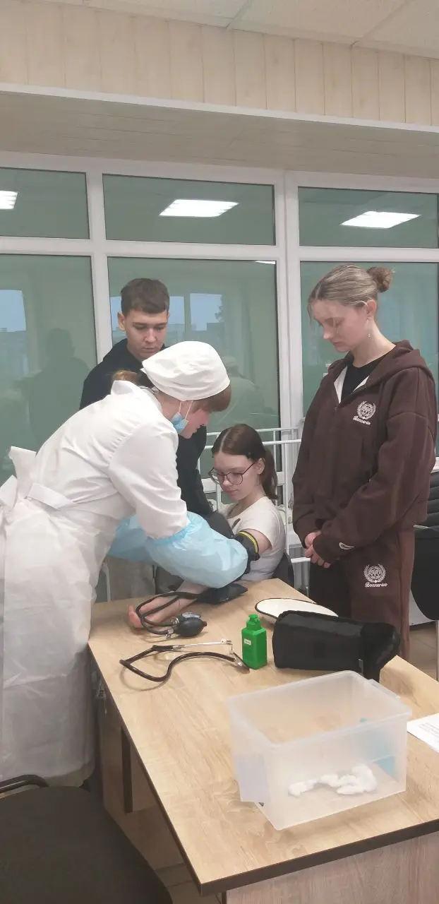 - Мастер-класс: обучались транспортировке пациента на носилках, наложению жгута при артериальном кровотечении и мягких бинтовых повязок при наличии ран, выполнению манипуляций по уходу за новорожденным ребенком.